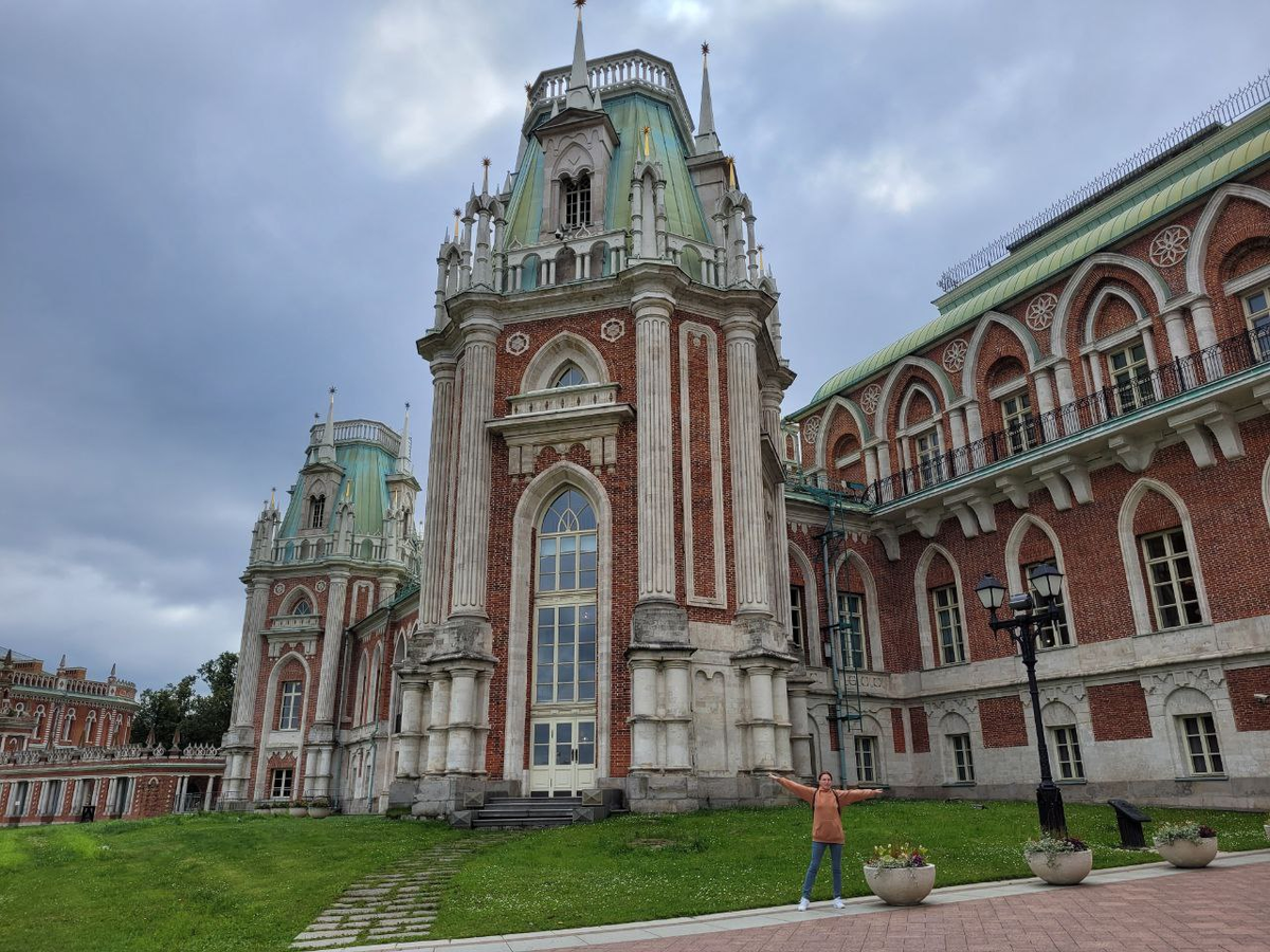 Мы прибыли в Москву в 6 утра, оставили вещи в гостинице и поехали в Царицыно. За первый день в столице мы набродили 30 000 шагов, несмотря на усталость и почти бессонную ночь в поезде. Было прохладно и пасмурно, но тёплые вещи решили проблему. Правда, к концу нашего отпуска нарисовалась другая: стало жарко, а одежды на такой случай я не захватила, поверив прогнозу.