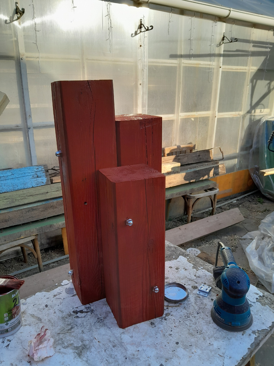 **Знакомая ситуация?** У каждого дачника есть свой склад «полезных» вещей. Хочу поделиться, как из старой, казалось бы, бесполезной древесины можно создать настоящий шедевр садового декора. От отчаяния к вдохновению Почти три года на нашем участке лежала гора пиломатериала, оставшийся от разобранной старой веранды. Муж из-за проблем со спиной не мог заняться разбором и переработкой, свекровь настаивала на том, чтобы всё это выбросить. Весной я решила, что нужно что-то с этим делать. Женский подход к мужским делам Первое, что бросилось мне в глаза в этой куче хлама- это брус 10×10, который ранее служил опорой для веранды. Он конечно был вида совсем не презентабельного..., поэтому я сначала решила попробовать пройтись по нему электрорубанком, и на моё удивление, брус оказался светлым внутри. Следующим этапом было пройти по нему шлифмашинкой. Да, работа не женская, но я получала от неё удовольствие. Преодолевая стереотипы Муж совсем не одобрял мою самостоятельность в мужских делах, но я