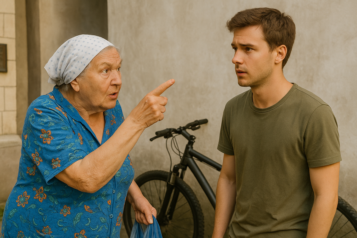 На четвёртый день я выхожу — вижу, как подросток на самокате несётся к подъезду, не вписывается в поворот, и прямо врезается в мой велосипед.