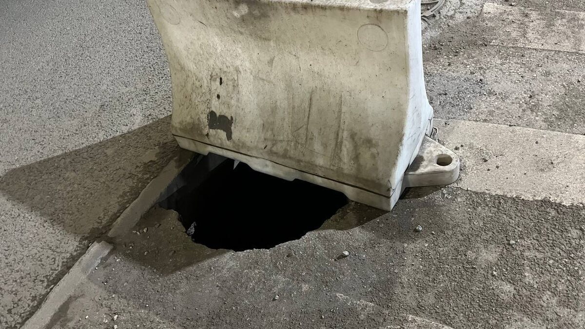 На пешеходной зоне возле дома №151 на улице Тухачевского образовалась глубокая яма, которую частично закрыли дорожным ограждением
