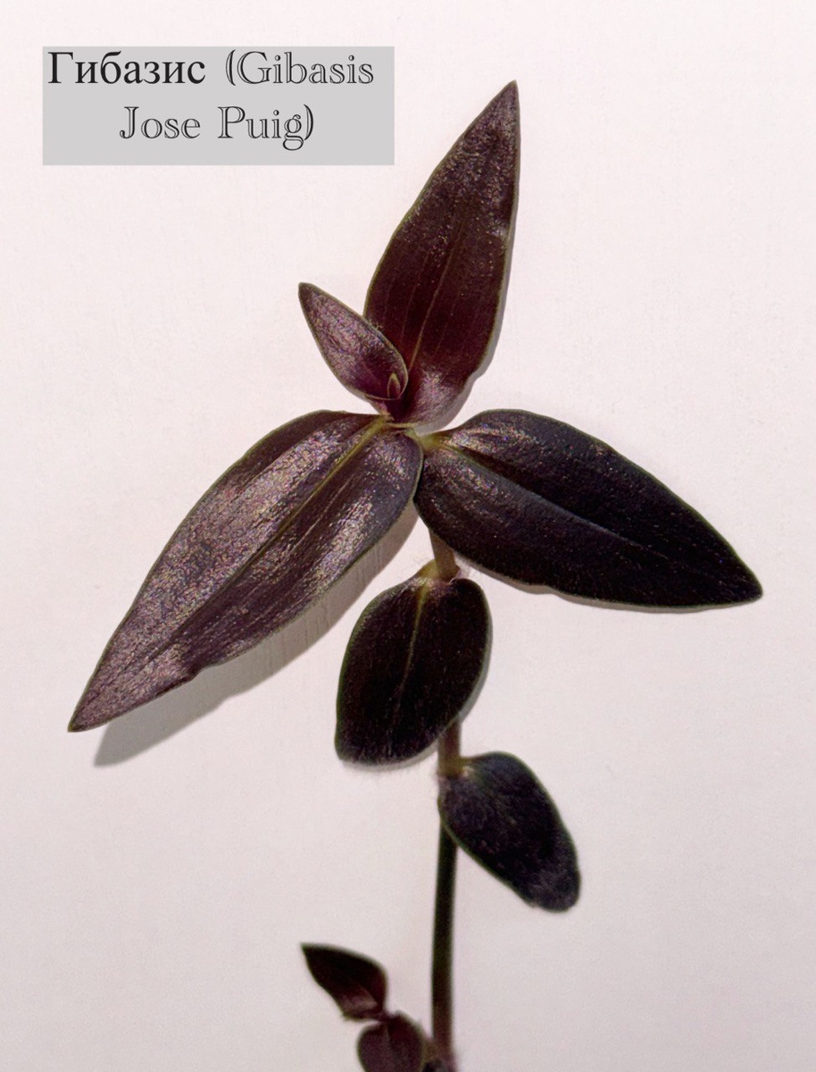 Гибазис ‘Jose Puig’ — редкий и визуально запоминающийся сорт ампельного растения, принадлежащего к семейству Коммелиновые. Это декоративная форма Gibasis geniculata, которая удивляет не цветами, а своей элегантной, контрастной листвой. Тёмные почти фиолетово-чёрные листья с выразительной светло-зелёной каймой создают глубокий, насыщенный визуальный эффект, особенно в подвесных кашпо или высоких полках. Внешние особенности ‘Jose Puig’ сразу привлекает внимание за счёт необычной окраски листвы. Этот сорт формирует длинные, гибкие побеги, которые мягко ниспадают вниз, образуя плотный, ниспадающий каскад. Побеги: мягкие, тонкие, длиной до 60–90 см, легко стелются и адаптируются под любую форму посадки. Листья: удлинённые, гладкие, с почти чёрным центром и светлой ярко-зелёной каймой. При хорошем освещении контраст особенно выразителен. Цветение: миниатюрные белые цветки могут появляться в тёплое время года, но основной декоративный эффект достигается именно за счёт листьев. Условия выращи