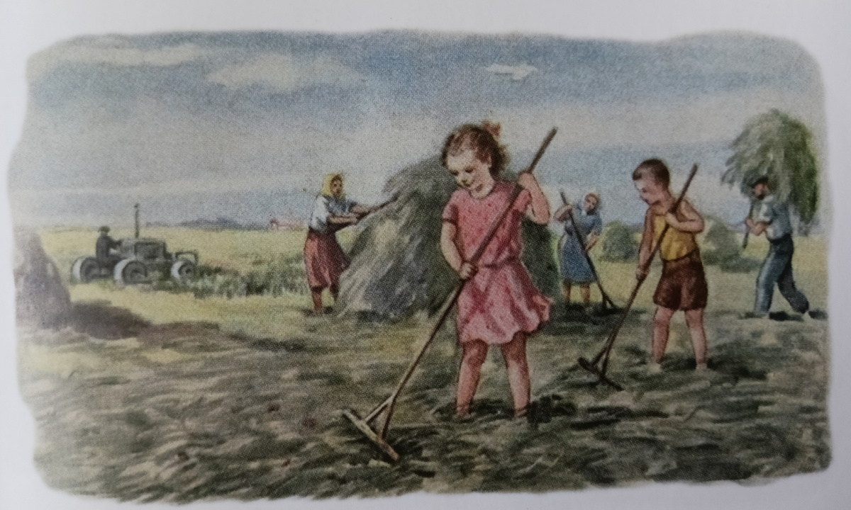 1. Проверка домашнего задания. 2. Работа с букварём. Откройте учебник на стр. 35 и рассмотрите иллюстрацию. Послушайте рассказ. "На поле идёт уборка сена. Взрослые косят траву специальными машинами и собирают её в стог вилами. А дети помогают граблями ворошить сено, чтобы оно лучше сохло." Пусть мужчину с вилами зовут Иван, а женщину, которая поправляет стог - Варя. Составьте предложения про Ивана и Варю. Пусть девочку с граблями зовут Сима, а мальчика - Вова. Составьте предложения про Симу и Вову. - Какие слова на картинке со звуком [в]? Со звуком [в']? Прочитаем столбики слов. Найдите слова в столбиках по описанию. - Самец коровы; - Инструмент для сбора сена; - Птица. Прочитаем рассказ. Ответьте на вопросы предложением. - У кого машины? - Что у Ивана и Вари? - У кого грабли? - Кто ворошил сено? Прочитайте рассказ ещё раз. Закройте учебник и расскажите текст по памяти. Прочитаем слоги. - Как читаются слоги верхнего ряда: твердо или мягко? - Как читаются слоги нижнего ряда? Придумайт