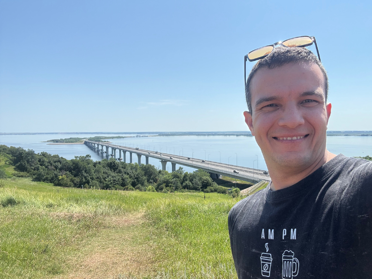 Так было и во время нашей поездки в Казань. После сотни километров однообразных пейзажей неожиданно открывается красивый вид на реку Каму — мы пересекаем её по мосту. В этот раз нам захотелось увидеть окрестности с высоты. Мы решили найти смотровую площадку, чтобы полюбоваться панорамой.
