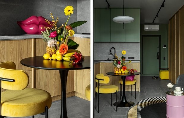Максимум цвета: как дизайнер оформила маленькую кухню в студии 32 м²