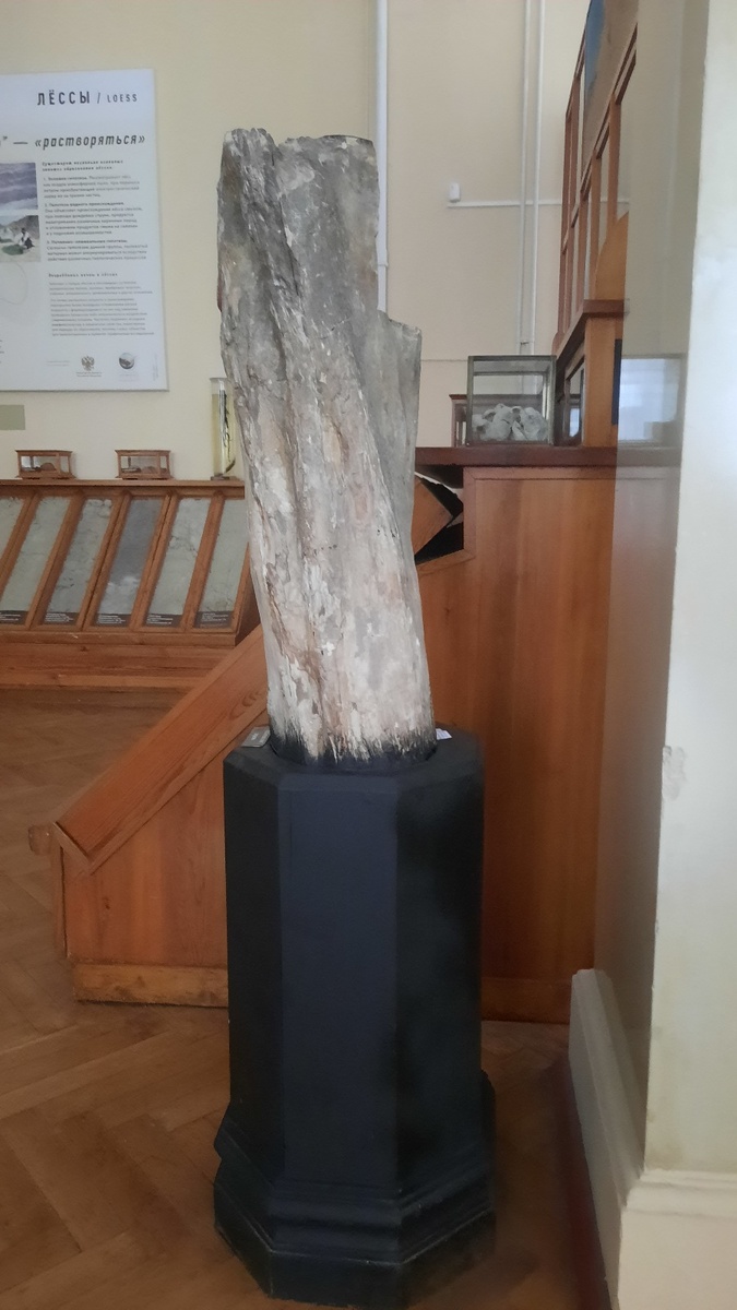 Пока геологический музей Тимирязевки готовится к переезду в новое помещение, публикуем новости за него) Один из самых примечательных экспонатов Геолого-минералогического музея имени И.Б. Ауэрбаха – часть ствола окаменелого дерева. Этот уникальный образец был найден на территории Екатеринославской губернии (ныне – Донецкая область) лично Германом Адольфовичем Траутшольдом, который возглавил кафедру минералогии и геогнозии Петровской земледельческой и лесной академии после смерти Ауэрбаха в 1868 году. Согласно научным исследованиям, строение клеток древесины у окаменелых деревьев почти такое же, как у современных араукарий. (вечнозеленые растения семейства хвойных, встретить их сейчас можно только в Южном полушарии). Значительные залежи окаменелого дерева обнаруживаются в самых разных местах, от США до России. Самым известным в мире местом, где можно встретить окаменелые деревья, считается Петрифайд-Форест («Окаменевший лес») в Аризоне, в котором стволы араукарии достигают длины 65 метро