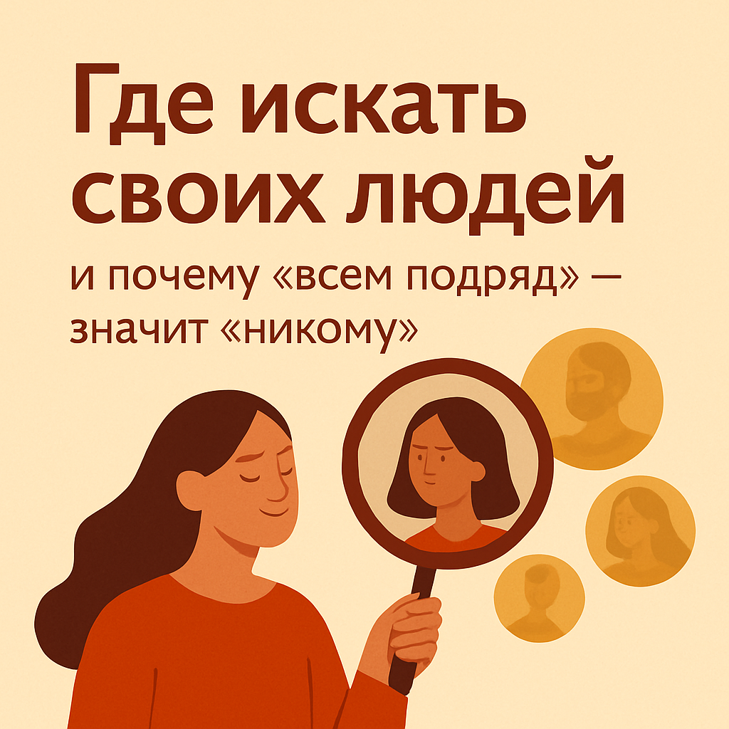 Но если ты хочешь вести «своих» людей — забудь слово «все». Когда ты говоришь «мой ретрит для всех» — человек не видит себя внутри твоего поля.