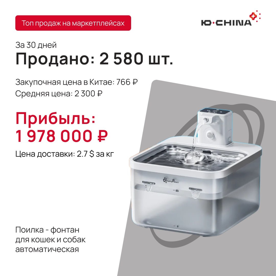 🧰 Подборка товаров с с высокой оборачиваемостью 🛒 Поилка-фонтан для кошек и собак 👉Повышает средний чек в категории «зоотовары» 👉Не требует брендирования — покупают по функционалу 👉Автоматическое управление — вызывает доверие и интерес у покупателей 🛒 Электрический чайник с подсветкой 👉Стимульная покупка: эффектный товар по доступной цене 👉Подсветка — триггер на фото и в роликах, легко заходит в продвижение 👉Быстро набирает отзывы — понятен и востребован 👉Идеален для новичков: товар из категории «must-have» 📦 Оба товара — «визуальные лидеры», которые выделяются на витрине и работают на продажу уже на первом просмотре карточки. Отличный выбор для выхода на маркетплейс без сложной логистики и получения быстрой прибыли. ✈️ Отправьте заявку и получите расчёт поставки