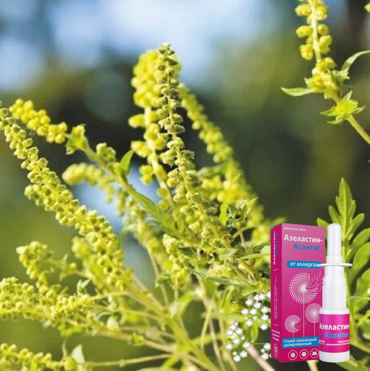 Против аллергии на амброзию людям с аллергическим ринитом рекомендуется использование препаратов местного применения, способствующие уменьшению зуда в носу, обильных выделений, затрудненного носового дыхания и другие его проявления. Назальный спрей Азеластин-Ксантис* — средство от аллергического ринита, провоцируемого различными аллергенами, в том числе и амброзией. Спрей может назначаться и взрослым, и детям от 6 лет, препарат отпускается без рецепта. Работа действующего вещества азеластин начинается в течение 15 минут. Действие может сохраняться до 12 часов. Применять назальный спрей можно продолжительный период без риска возникновения привыкания.