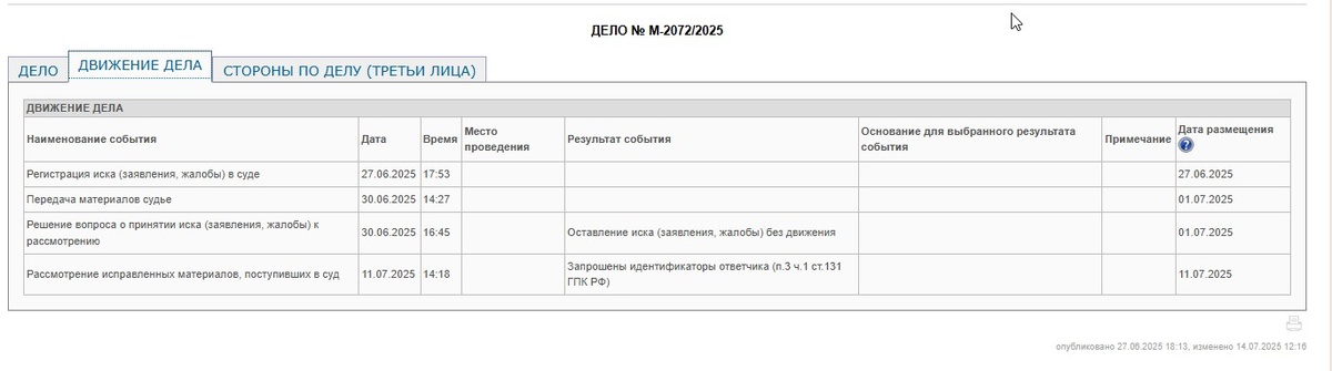 🟡🟡🟡 Пока мы ждем назначение судебного заседания, напомним, что мы ведем дело о банальном ДТП, где барышня Анастасия не признает вину и ведет себя инфантильно, а ее Мама будет писать объяснения в полиции. 👇👇👇 Если не смотрели 👇👇👇 👉 Дело с глупой виновницей ДТП - ВИДЕО самого ДТП; 👉 Дело с глупой виновницей ДТП - начало; 👉 Дело с глупой виновницей ДТП - ч. 2 (ГИБДД и экспертизы); 👉 Дело с глупой виновницей ДТП - ч. 3 ЯЖМАТЬ (первая часть досудебки); 👉 Дело с глупой виновницей ДТП - ч. 4 Последний шанс; 👉 Дело с глупой виновницей ДТП - ч. 5 - "договорилась" 🟢🟢🟢 Гагаринский районный суд, судебное заседание еще не назначил. Мы направили документы для устранения причин обездвижа, суд их принял и самостоятельно истребует идентификаторы ответчика: ✔✔✔ Немного объясним: 👌👌👌 Для верного урегулирования спора, а также правильной и удобной реализации судебного решения, была введена норма, согласно которой, суду необходимо предоставить все имеющиеся данные об ответчике, возмож