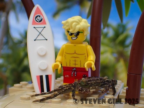 LEGO-серфер в тропиках от Стивена Гилла! 🏄♂️🌴 Минифигурка в очках и с доской для сёрфинга выглядит просто огонь! Добавь пальму с детализированной текстурой и гавайский фон — вот и готов идеальный пляжный сет. Вы только посмотрите, как этот чувак ловит волну! #LEGOcreator #beachvibes Источник: Flickr Lego group