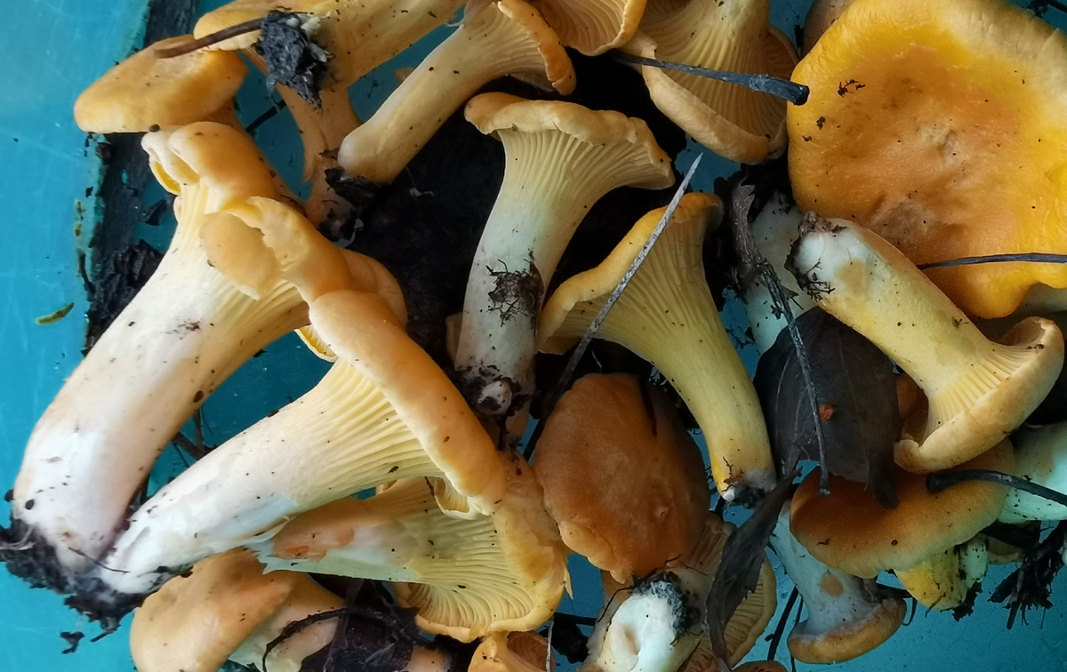 А под руку попали... лисички! Сходила на 15 минут в лесок у дачи, потому что мне приспичило их нарисовать. И недозрелую шишку от елки еще захватила. Она ярко-зеленого цвета из-за своей недозрелости, и мне показалось, что этот цвет будет хорошо "разбавлять" желто-охристые цвета лисичек на рисунке. Разложила свои сокровища на листе скетчбука для акварели. Сначала, как обычно, легкая зарисовка карандашом. Затем - первая бледная заливка акварелью. Тут важно не переборщить с густотой краски, иначе следующие слои будут тяжело накладываться. Над всеми элементами рисунка работаю одновременно. Это удобно: пока заливаешь последний элемент - первый уже высох и работу можно не останавливать. Далее - после просыхания первого слоя, уплотняю цвета и добавляю детали. "Натура" до последнего момента находится прямо на листе. Мне так удобно: постоянно сверяюсь с ней относительно формы, размеров, а также оттенков цвета. Не забыть про тени, иначе предметы на листе будут "летать". Можно убирать "натуру