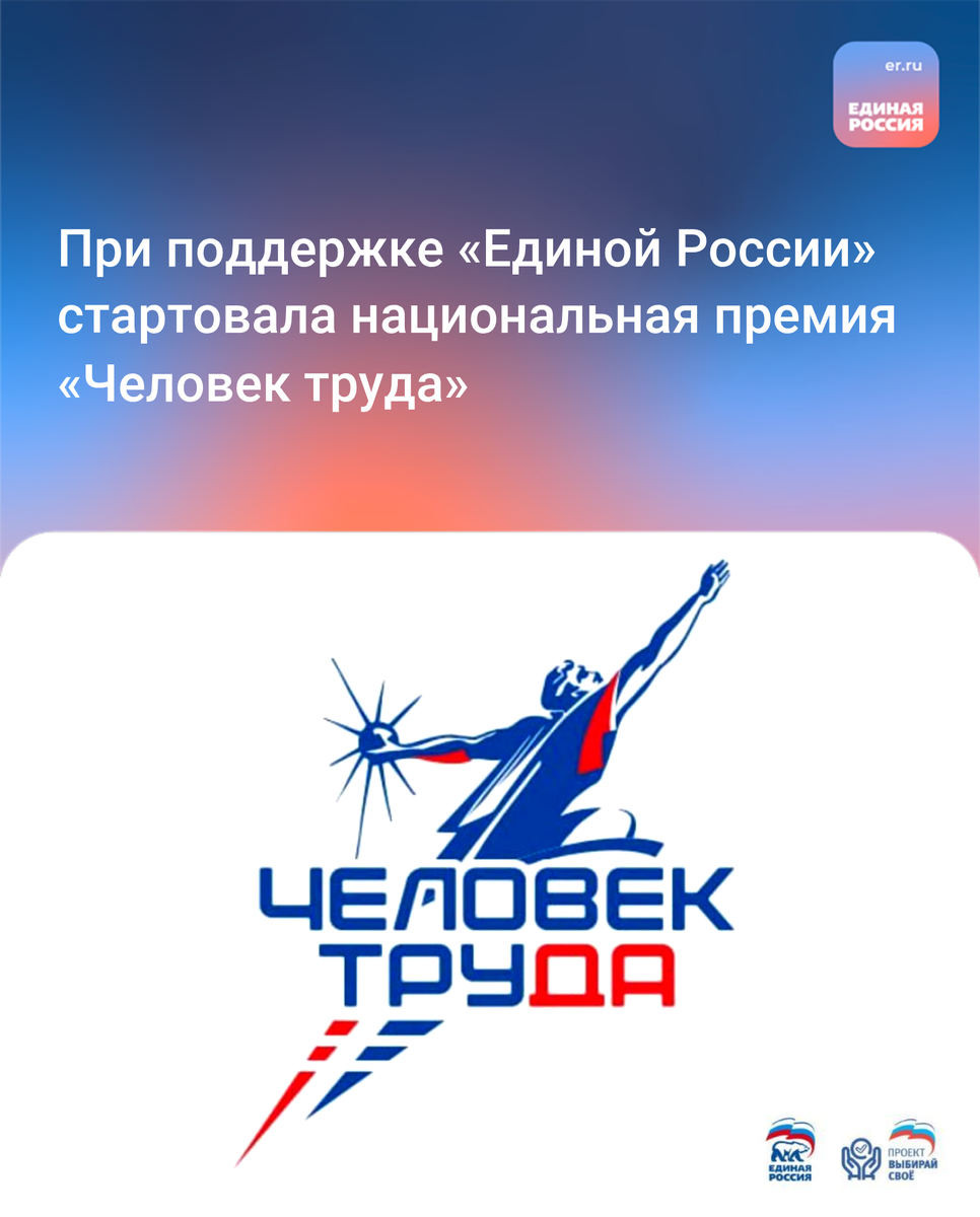 Премию организуют партпроект «Выбирай своё» и Ассоциация разработчиков, изготовителей и поставщиков средств индивидуальной защиты. «Экономический прорыв невозможен без системной работы с кадрами. Повысить вовлеченность молодёжи в рабочие профессии, вернуть уважение к реальному труду «у станка» – один из вызовов нашего времени и приоритетная задача «Единой России». Цель премии «Человек труда» – сформировать новый стандарт ценности рабочих профессий. Мы отметим лучших, поддержим наставников и трудовые династии. Важно, чтобы труд рабочего, инженера, агрария стал синонимом личного успеха и залогом технологического суверенитета страны», – прокомментировал секретарь Генсовета Владимир Якушев. Подать заявки можно на сайте премиячеловектруда.рф/ или на электронную почту info@ynao.er.ru по шести номинациям: ▪ «Технологический лидер»; ▪ «Лучший наставник»; ▪ «Молодой специалист»; ▪ «Семейные трудовые династии»; ▪ «Совет ветеранов»; ▪ «Трудовое патриотическое воспитание». Награждение победителей