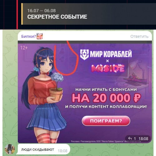 🔒 В "Мире Кораблей" завтра стартует секретное событие. И похоже, я понял, в какую сторону оно движется. Официальных подробностей нет, но по косвенным признакам складывается довольно чёткая картина — возможна коллаборация с игрой MiSide. Если ты, как и я, сначала спросил "а это вообще что?", вот кратко: MiSide — свежая аниме-хоррор игра от русских разработчиков. Очень нестандартный микс: визуальный стиль как в артбуке, атмосфера психологического триллера, и при этом геймплей скачет от симулятора свиданий до квестов и головоломок. На первый взгляд, вообще не то, что можно ожидать от МИРА КОРАБЛЕЙ. Но именно поэтому может получится интересно. 🎭 В MiSide много визуальных иллюзий, смена реальности, странные персонажи. Если это действительно та самая игра, с которой готовится кроссовер — нас может ждать что-то очень необычное. 🕵️♂️ Повторюсь — это не подтверждённая инфа, но всё слишком хорошо сходится. И если я прав, то завтра будет интересно. Как минимум, повод заглянуть, посмотрет