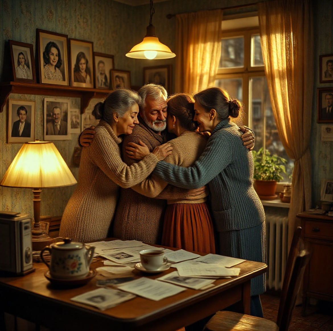 Я подошла к Валентине и обняла её. Светлана всхлипнула, потом тоже встала, подошла к нам. Павел подтянулся последним — неловко, но по-настоящему. Мы стояли, четверо, тесно прижавшись, как в детстве, но намного старше.