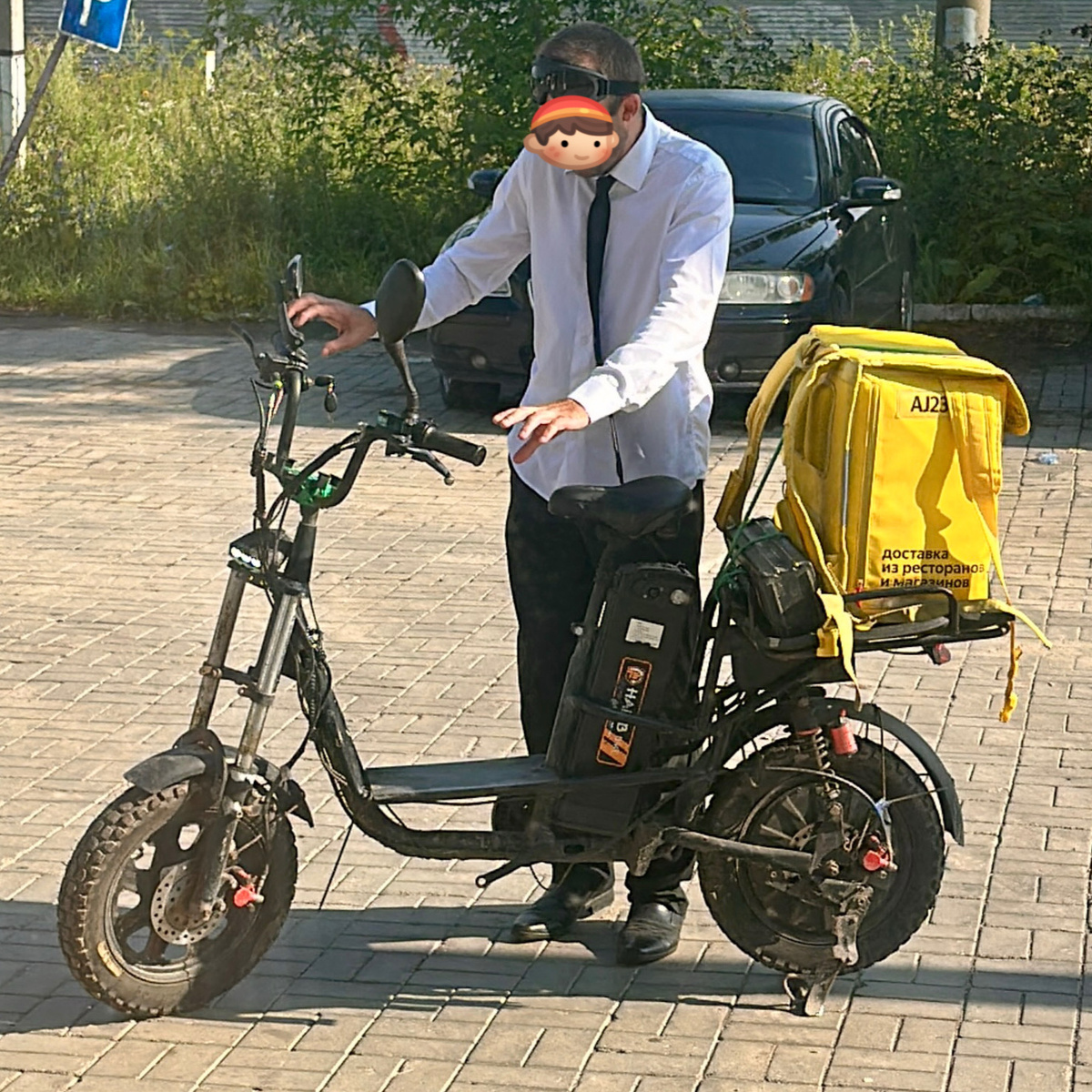 Не смогла пропустить колоритный кадр. Ни разу не видела таких стильных курьеров. Интересно, он бывший офисный работник или ещё только собирается сменить сидушку велосипеда на удобное кресло. А может, он подрабатывает, совмещает две работы или важные документы доставляет? А сумка-термос от Яндекса в качестве маскировки? Всё в нем прекрасно. Белая рубашка (жаль, только навыпуск), черный галстук, брюки со стрелками, туфли вот чуток подвели — припылились. Этот парень сделал мое утро. Хотела в редакторе на телефоне фон сменить, чтобы Московскую область заросшей травой не позорить, но глушат интернет. Не получилось «лицо» региона спасти, уж пусть как есть. Сегодня, надеюсь, будет веселая статья. Постараюсь передать своё видение тех моментов, которые описывать буду. Жаль, в текст интонацию не заложишь. Звуки и тембр не передашь. Вчера мне весь день народ пытался что-то да показать. Уж слишком откровенно и даже с подозрительным вожделением выставляли свои участки тел. Случайно прочла, что, ок