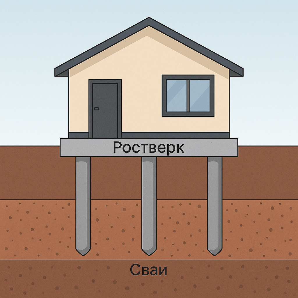 А ещё: свайно-ростверковый фундамент используют при строительстве метро и мостов — именно из-за его надёжности и способности выдерживать огромные нагрузки.