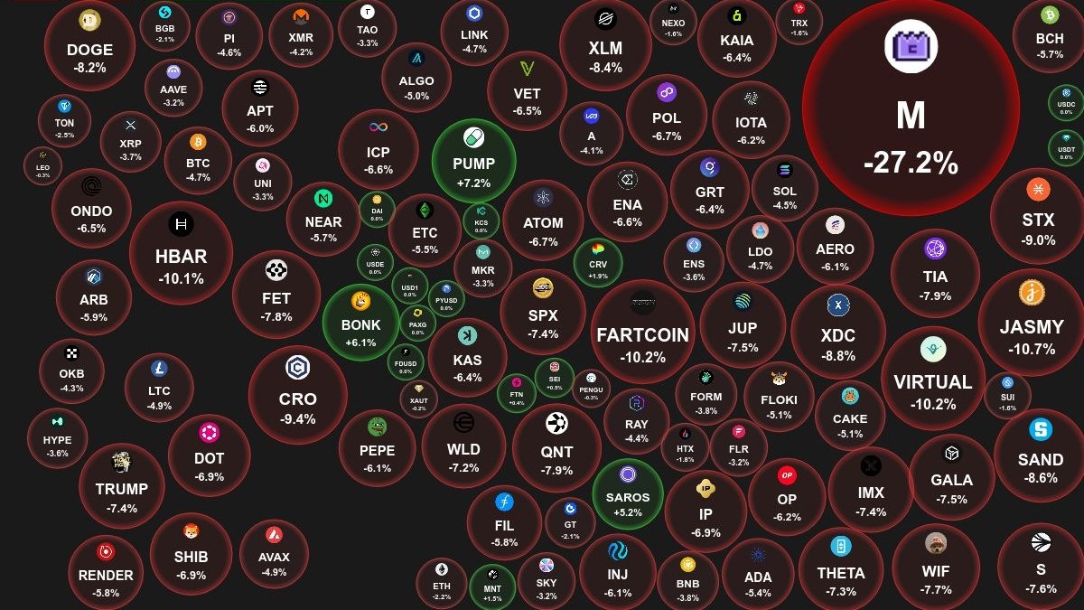 📊 Ежедневный обзор рынка криптовалют от Coinbubbles.ru 🗓 15.07.2025 11:06 по Москве. 🔗 Посмотреть на сайте 📈 Лидеры роста (из ТОП-100): 🟢 Pump.fun (PUMP): $0.0058 (+7.2%) 🟢 Bonk (BONK): $0.0000 (+6.1%) 🟢 Saros (SAROS): $0.2716 (+5.2%) 📉 Лидеры падения (из ТОП-100): 🔴 MemeCore (M): $0.4116 (-27.2%) 🔴 JasmyCoin (JASMY): $0.0155 (-10.7%) 🔴 Fartcoin (FARTCOIN): $1.2414 (-10.2%) 🔍 Основные метрики: 🔴 Общая капитализация: $3661.06 млрд (-4.10%) 🟢 Общий объем торгов: $255.00 млрд (+26.64%) 🔴 Доминация Bitcoin: 63.43% (-0.43%) 🟢 Доминация Ethereum: 9.80% (+0.20%) 🔴 Индекс страха и жадности: 73 / 100: ЖАДНОСТЬ (-1) 🔴 Индекс Альтсезона: 32 / 100: НЕ АЛЬТКОИН-СЕЗОН (-1) 📖 Интересные статьи: 👉 Майнинг на GPU видеокартах - подробное руководство для новичков. 👉 Основные мошеннические схемы при P2P обмене и как в них не попасть. 👉 Сравнение биржевых токенов: преимущества владения GateToken (GT).