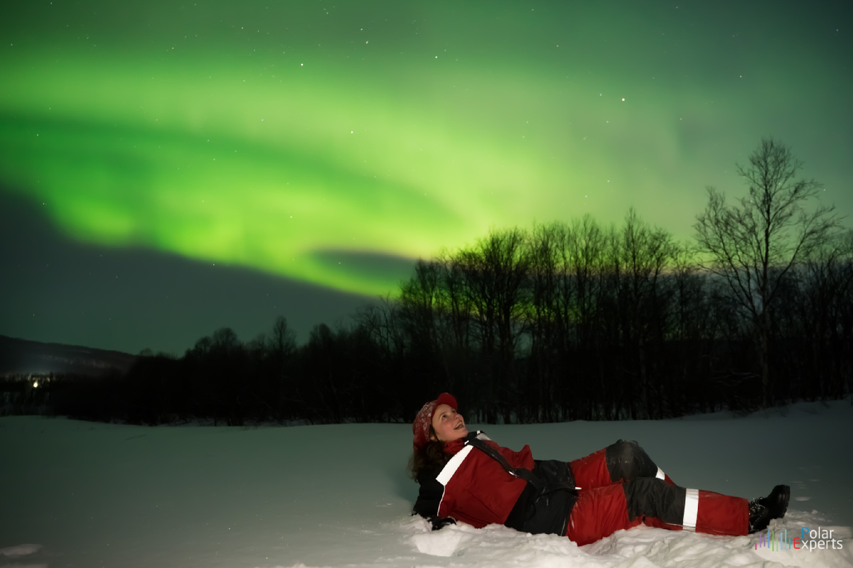 Круто валяться на снегу, глядя на сияющую над тобой Aurora Borealis!