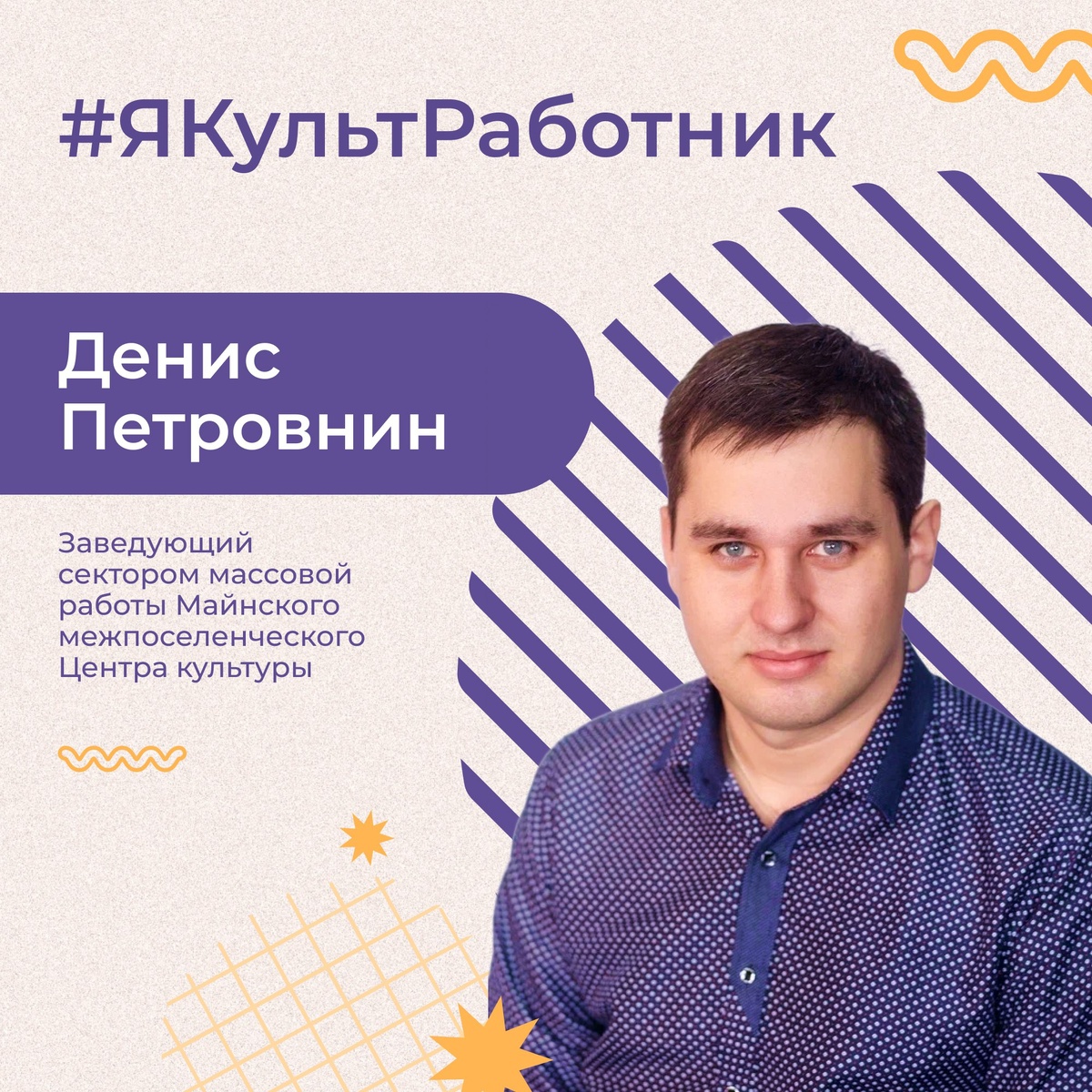 Лето радует солнечными днями, а мы продолжаем рассказывать о работниках сферы культуры нашего региона. Денис Петровнин (https://vk.com/denpetrovnin) – талантливый молодой специалист, трудится в Майнском Центре культуры с 2013 года. Уже в подростковом возрасте он активно участвовал в массовых мероприятиях своего района в роли ведущего и был задействован в театрализованных постановках.