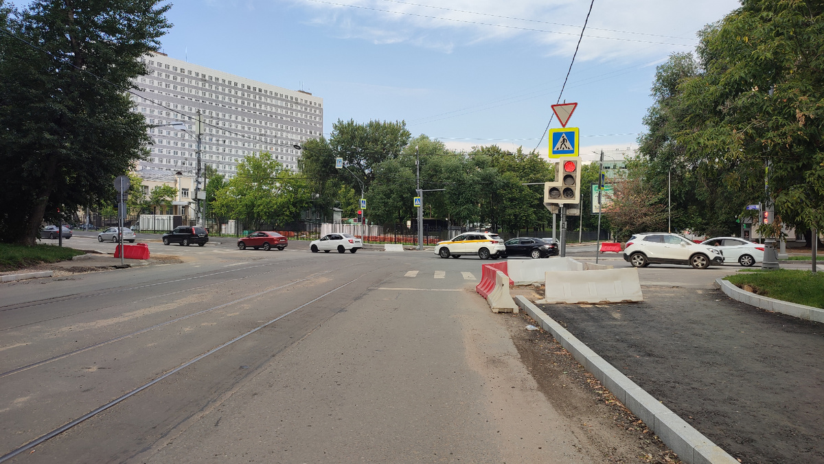 Перекрёсток улиц Трифоновской и Щепкина. Все работы закончены, а бордюринг идёт своим отдельным чередом.