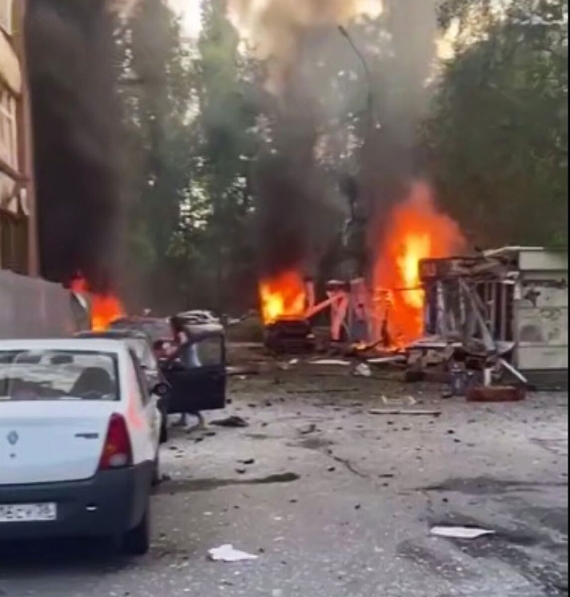 Воронеж после атаки БПЛА: горящие машины и разрушения попали на видео