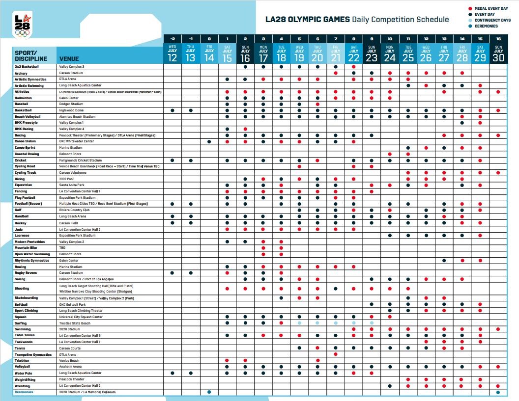 Оргкомитет летней Олимпиады-2028 опубликовал расписание соревнований