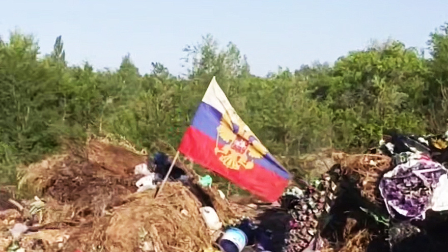 В Балакове российский флаг воткнули в кучу мусора: реакция главы района