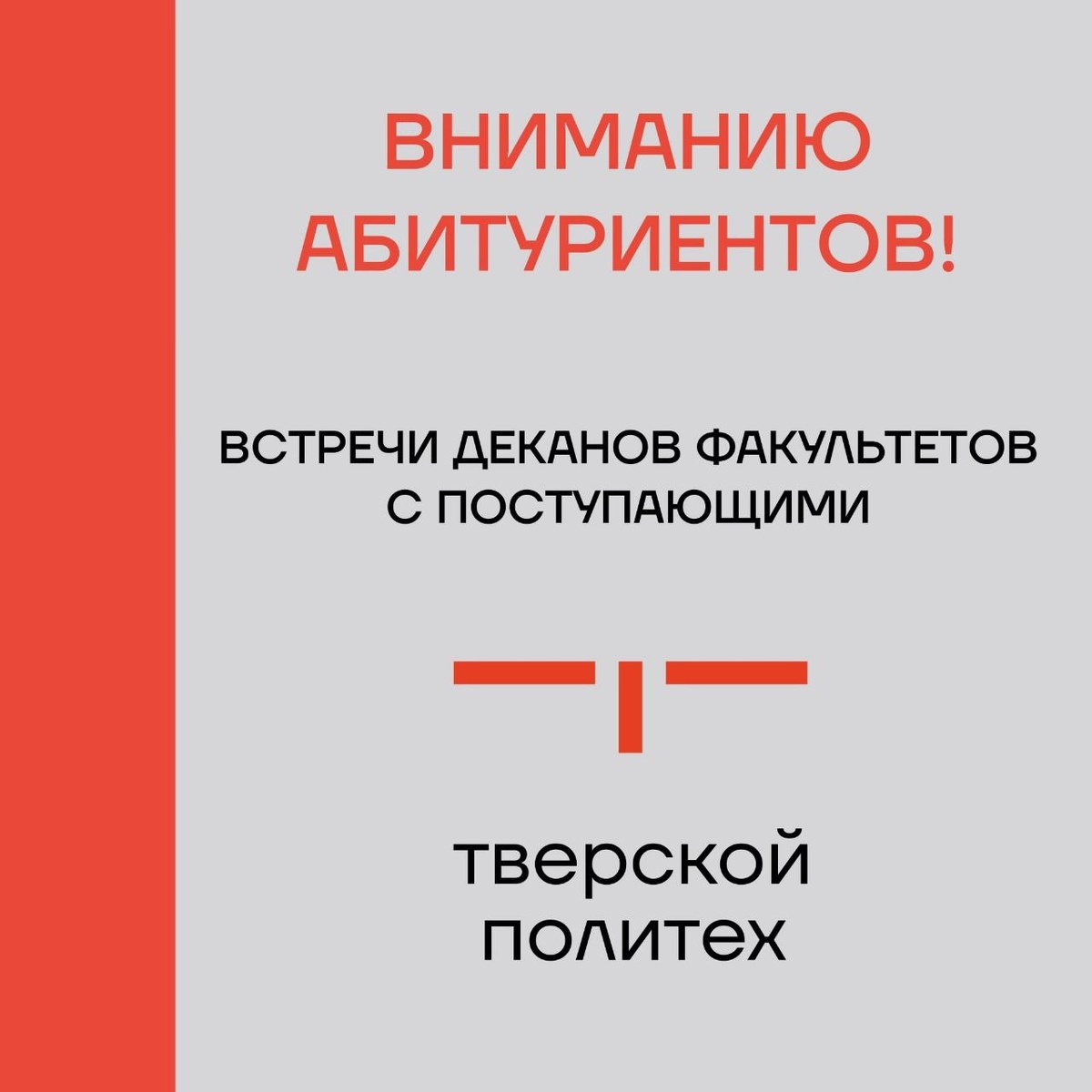 ❗В июле 2025 года в Тверском государственном техническом университете проходят встречи деканов ТвГТУ с абитуриентами❗ 📌ФПИЭ 📅 15 июля (вторник), 14.00 Лабораторный корпус (ул. Академическая, д.12), актовый зал 📌МСФ 📅 18 июля (пятница), 12.00 Учебный корпус (ул. Маршала Конева, д.12), 2-й этаж, холл перед приемной комиссией 📌ИСФ 📅 18 июля (пятница), 14.00 Учебный корпус (ул. Маршала Конева, д.12), 2-й этаж, холл перед приемной комиссией 📌ФУСК 📅 19 июля (суббота), 11.00 Учебный корпус (ул. Маршала Конева, д.12), 2-й этаж, холл перед приемной комиссией 📌ФИТ 📅 19 июля (суббота), 12.00 Учебный корпус (ул. Маршала Конева, д.12), 2-й этаж, холл перед приемной комиссией 📌ХТФ 📅 25 июля (пятница), 11.00 Химико-технологический корпус (пр. Ленина, д.25), 3-й этаж, актовый зал ☎Справки по телефону: (4822) 78-70-80