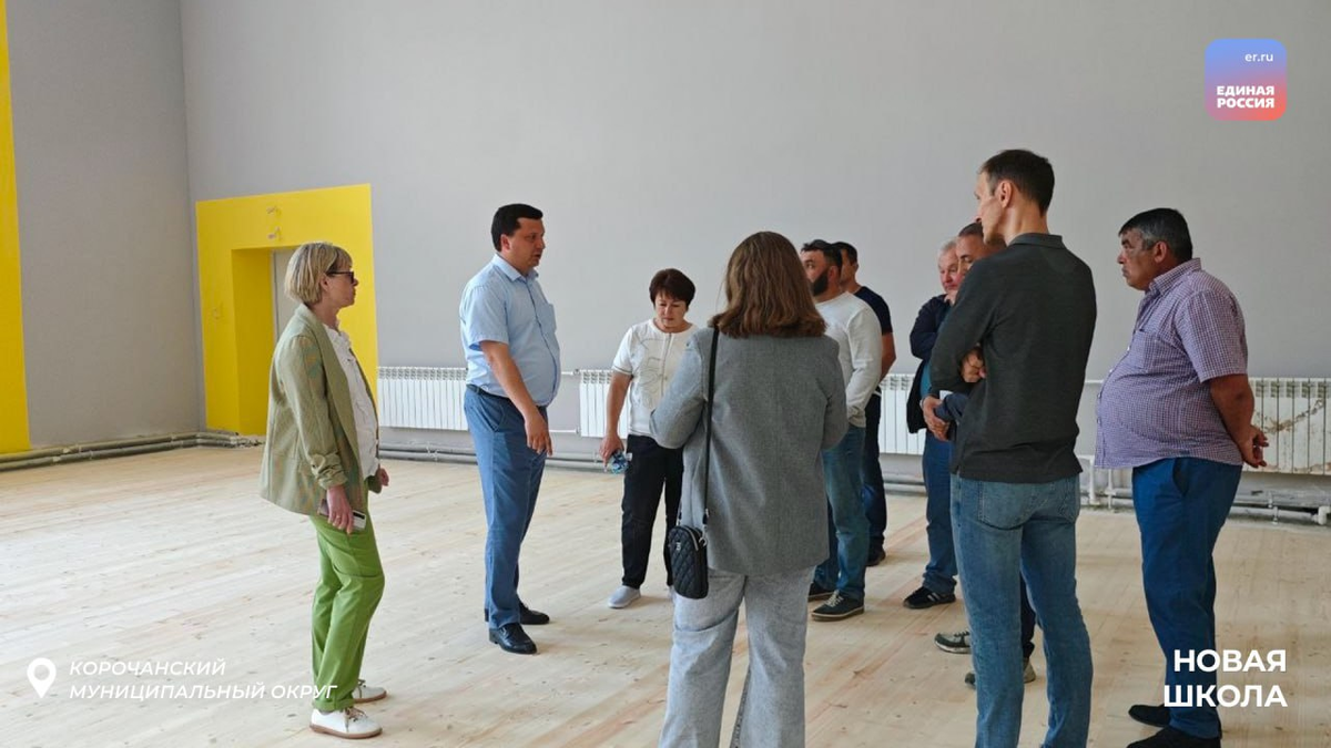В Корочанском округе партийцы провели очередной мониторинг капитального ремонта местной школы. В здании учебного заведения продолжаются работы по внутренней отделке помещений. Выполнена покраска стен и укладка напольного покрытия, в кабинетах завершена сборка мебели. В фойе уже установлены декоративная световая арка и мультимедийный экран. Также на текущем этапе ведется благоустройство пришкольной территории.