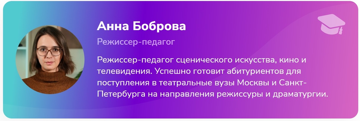- У TutorPlace — Анна Боброва, педагог, готовящий в ведущие театральные вузы страны.