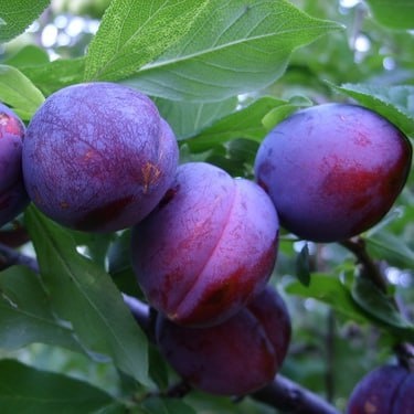 🍈Слива Памяти Путова. Плоды массой 14-16 гр, округлые, носик плоский, покрыты густым восковым налетом. Окраска фиолетово-бордовая, темная. Косточка средней величины, отделяемость средняя. Мякоть желтая, плотная, довольно сочная, вкус хороший, столовый, сладкий. Пригоден для всех видов переработки. Созревает в начале II декады августа, созревание дружное. Плодоносит с 4-х лет. Урожайность выше средней, до 20 кг/д. Зимостойкость дерева и цветочных почек высокая. Сорт довольно устойчив к осыпанию плодов. 🍈Слива Тимошка является интересным сортом, который отличается особыми характеристиками и требованиями к выращиванию. Он может быть использован как для потребления в свежем виде, так и для приготовления различных консервированных продуктов.Плоды имеют округлую форму и выровненную поверхность. Вес одного плода составляет примерно 16,6 г. Кожица красная, обладает сильным восковым налетом. При этом