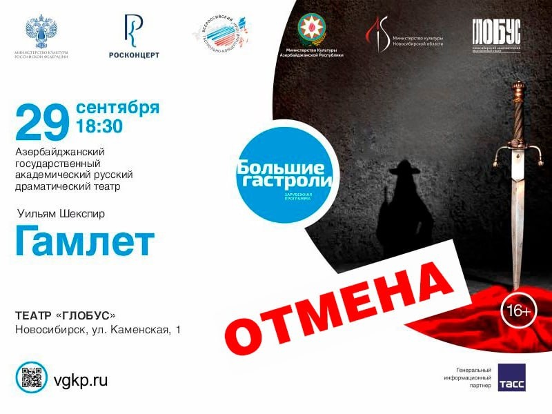 Спектакли Азербайджанского русского драматического театра отменили в Сибири Новосибирский театр «Глобус» объявил об отмене показов спектаклей Азербайджанского государственного академического русского драматического театра. Они должны были пройти по в федеральной программе «Большие гастроли». 28 сентября в Новосибирске был запланирован спекталь «Мусье Жордан, ученый-ботаник, и дервиш Масталишах, знаменитый колдун», а 29 сентября — «Гамлет». Причины отмены не называются. При этом в 2024 году гастроли Азербайджанского драматического театра успешно прошли в сибирских городах. Они завершились выступлениями в Новокузнецке и Кемерове. «Мы испытали во время гастролей в Сибири бурю эмоций, — говорил замдиректора театра Ильхам Мамедов. — И это не просто слова, не просто обычная творческая поездка, а душевное состояние от пережитых мгновений настоящего счастья». Народная артистка Азербайджана Наталья Шаровская отмечала, что именно в сибирское турне оставило наиболее яркие впечатления. Хотя