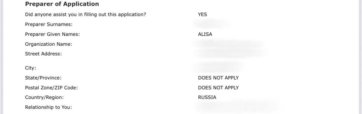 Часто на консультациях разбираем анкеты на визы США B1/B2, F1/F2, которые были заполнены другими агентствами. Пример, вот клиент прислал анкету, которое заполняло популярное агентство: Что бросается в глаза: списывание ваших данных и просто их перевод на английский. Многие как раз думают, что визовые агенты берут анкету, которую вы заполнили на русском и просто переводят. И когда видим такие анкеты, в которых очевидно, что агент совсем не разбирался в данных человека, а просто «скопировал-перевел-вставил» - становится очень обидно за заявителя! Особенно если ему еще и отказали в визе! И еще хуже, когда там не только списывание, но еще добавление ошибок: Прежде всего если человек не знает как заполнять тот или иной пункт анкеты, мы настоятельно просим сделать пометку «уточнить»: чтобы в ходе работы обсудить вопрос и определить, какой ответ будет самым корректным именно в вашем случае. Перепроверяем данные, ситуации бывают разные: Что еще делаем по анкете: И это, конечно, только часть р