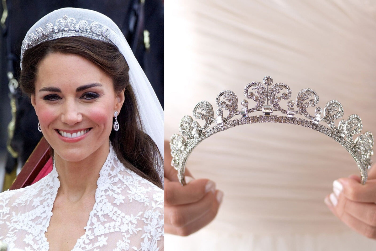 Тиары, безусловно, являются самыми знаковыми драгоценностями, связанными с королевской семьей. Кейт Миддлтон не носит их часто, что делает каждое ее появление в тиаре особенно запоминающимся. Одним из самых значимых моментов было ее свадебное торжество, когда она появилась в тиаре Cartier Halo Scroll. Эта тиара, созданная в 1936 году, была подарком короля Георга VI его супруге, королеве Елизавете (матери королевы Елизаветы II). Она состоит из 739 бриллиантов огранки "бриллиант" и 149 бриллиантов огранки "багет". Легкая и изящная, тиара идеально подошла к свадебному платью Кейт, создав образ сказочной принцессы.