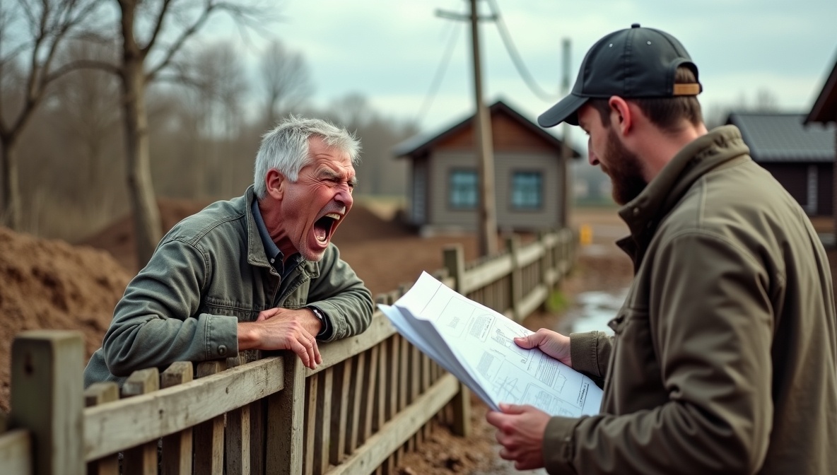 — На этой земле ты ничего не построишь! — орёт он, брызгая слюной через забор. — Тута болото! Весной всё поплывёт! Тридцать лет тут живу, знаю!