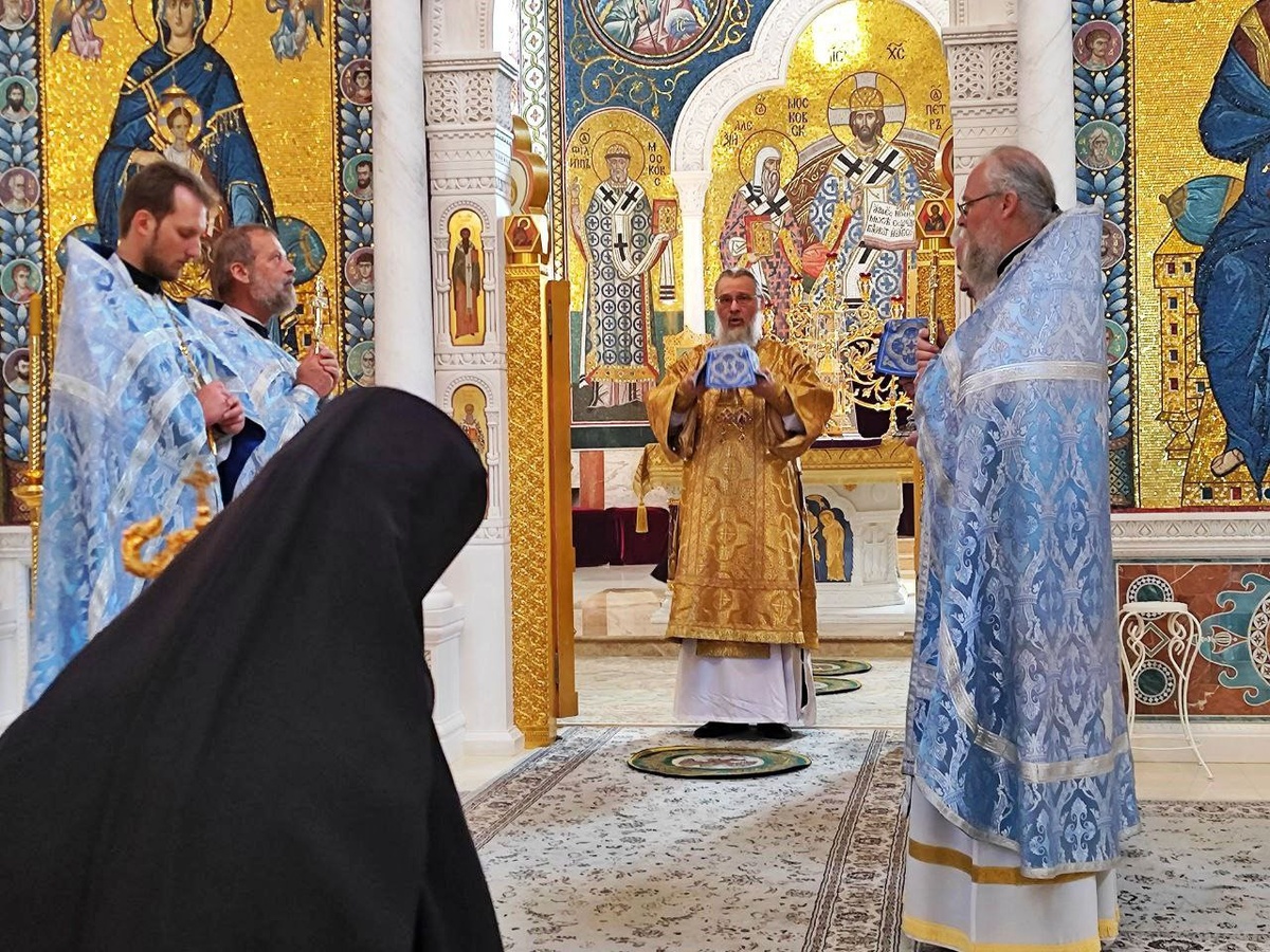 Сегодня, в праздник Ахтырской иконы Божией Матери, в Благовещенском соборе Серафимо-Дивеевского монастыря Божественную литургию совершил