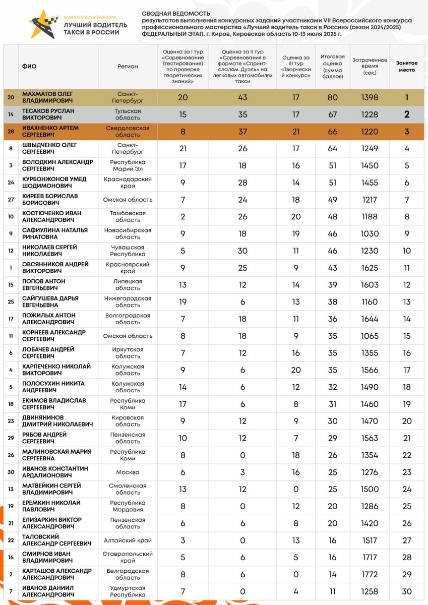 Публикуем сводную ведомость финала, а также результаты за каждый тур.