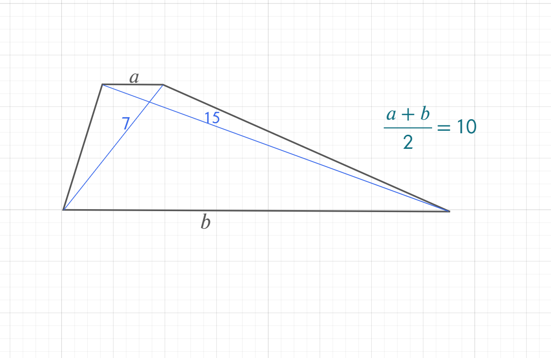 Найдите площадь трапеции, диагонали которой равны 7 и 15, а средняя линия равна 10 ...