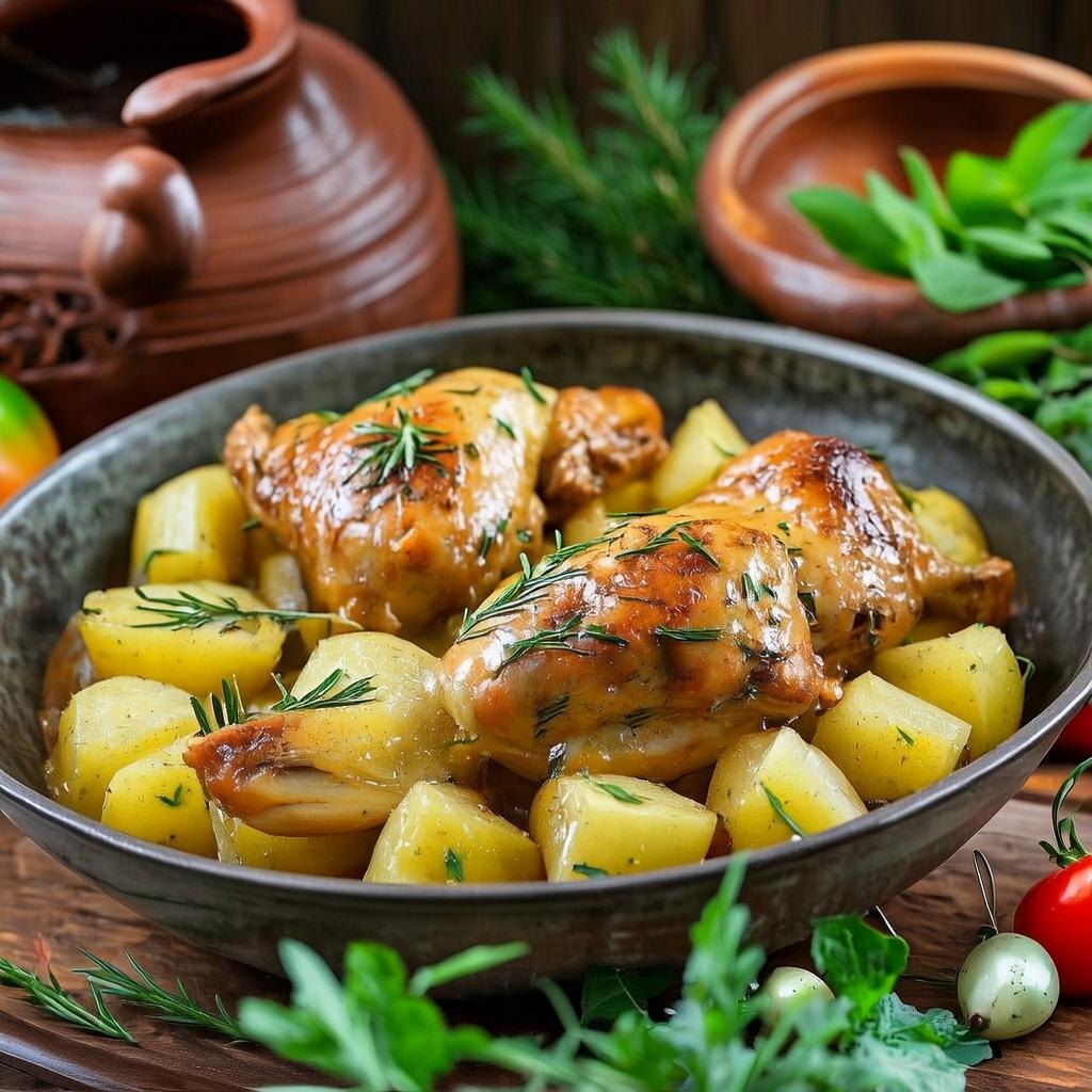 В миске смешайте оливковое масло, давленный чеснок, мелко нарезанный розмарин, соль и перец. Хорошо натрите этим маринадом куриные бёдра и оставьте на 15–30 минут. Почистите картофель и нарежьте его крупными дольками. Посолите, поперчите, добавьте немного масла и перемешайте. Выложите картофель и курицу на противень, застеленный пергаментом. Запекайте 30–35 минут при 200°C. За 10 минут до готовности полейте курицу лимонным соком и посыпьте тертым пармезаном. Запекайте до золотистой корочки. Если вам понравился этот рецепт, не забудьте сохранить его в закладки, подписаться на канал и поделиться с друзьями.