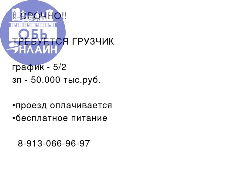 ТРЕБУЕТСЯ ГРУЗЧИК