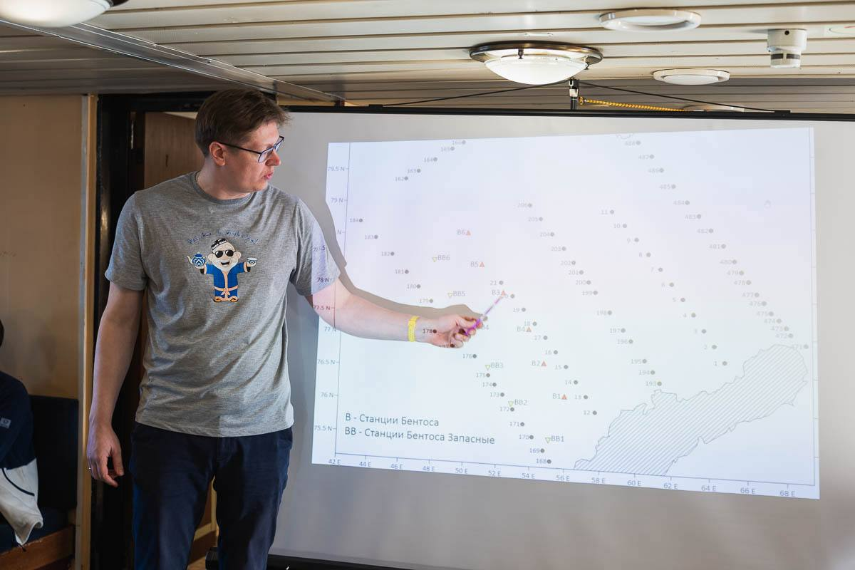 По Белому морю к Новой Земле идём мы на классном своем корабле. Точнее на научно-исследовательском судне. Уже в 11 дня «Профессор Молчанов» пересек Северный полярный круг (66 градусов 33 минуты), а значит – мы уже в самом сердце Арктики, она, кстати, давно в наших. На борту кипит работа: профессиональные исследователи и молодые ученые обустраивают лаборатории, распаковывают оборудование, трестируют приборы и готовят реактивы. Наставники начинают наставлять. Например, группа орнитологов под руководством Марии Владиславовны Гаврило уже вооружилась биноклями и определителями птиц, и жадно вглядывается в морские просторы. Отряд радиологического исследования приступил к испытаниям дозиметра, заодно проверили, что с радионуклидами на борту, выяснили – они есть, но только мирные и в норме. Группа морских работ провела первое собрание по планированию, задача сверить часы и точки гидрологических станций. Планы амбициозные. Надеемся, что выполнить их океанологам, гидрохимикам и гидробиологам