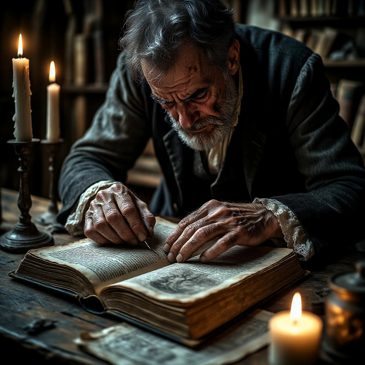 Той же ночью я начал работу. Я распустил старый переплет, аккуратно отделяя листы пергамента друг от друга. Воздух в моей мастерской наполнился запахом пыли и чего-то еще… слабого, сладковатого запаха высохшей крови.