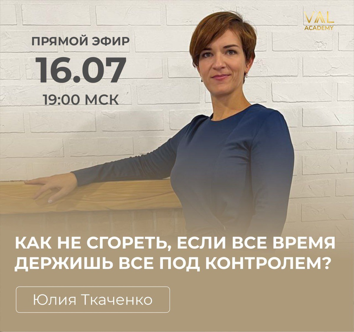 Мы продолжаем серию экспертных эфиров по средам с мастерами Vaal Academy Встречаемся здесь в прямом эфире в тг канале https://dzen.ru/id/624490f14bd92578679eb637 ⏳16 июля в 19.00ч по мск Юлия Ткаченко | Мастер VAAL ACADEMY @wow_fenix 🔹Мастер трансформационный программ и тренингов 🔹Психолог - консультант 🔹Мастер Vaal Academy 🔹Телесный консультант Проведет для вас эфир на тему: 🗣Как не сгореть, если все время держишь всё под контролем Разберем подробно такие вопросы: ✔️Как выйти из состояния перфекционизма ✔️Как научиться делегировать ✔️Как построить крепкие границы ✔️Как найти свой ресурс ✔️Как сохранить баланс Приглашайте своих друзей близких, родных в канал https://dzen.ru/id/624490f14bd92578679eb637 Ставьте напоминание ⏰и до встречи
