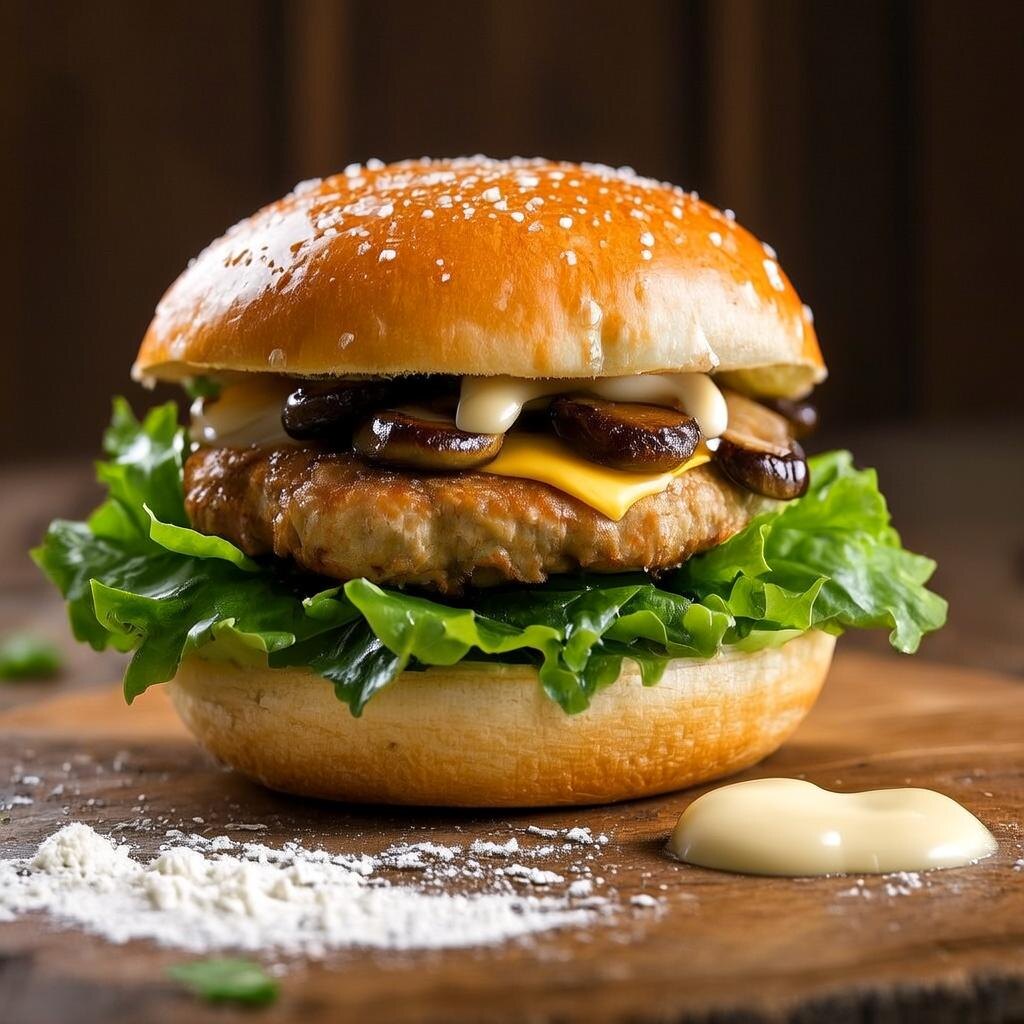 Любите сочные бургеры? Сегодня готовим домашний куриный бургер — сочный, ароматный и совсем не жирный. Отличный выбор для быстрого и сытного обеда или ужина. Пропустите куриное мясо через мясорубку. Добавьте яйцо, панировочные сухари, натёртый лук, чеснок, соль и перец. Хорошо перемешайте. Сделайте 4 котлеты одинакового размера. Не делайте их слишком тонкими — они должны быть сочными. Разогрейте сковороду с каплей масла. Обжарьте котлеты по 3–4 минуты с каждой стороны до золотистой корочки. За минуту до готовности положите на каждую котлету ломтик сыра, чтобы он расплавился. Намажьте нижнюю часть булочки горчицей, сверху положите котлету с сыром, салат, грибы, каплю майонеза и вустерского соуса. Накройте верхней половинкой булочки. Если вам понравился этот рецепт, не забудьте сохранить его в закладки, подписаться на канал и поделиться с друзьями.