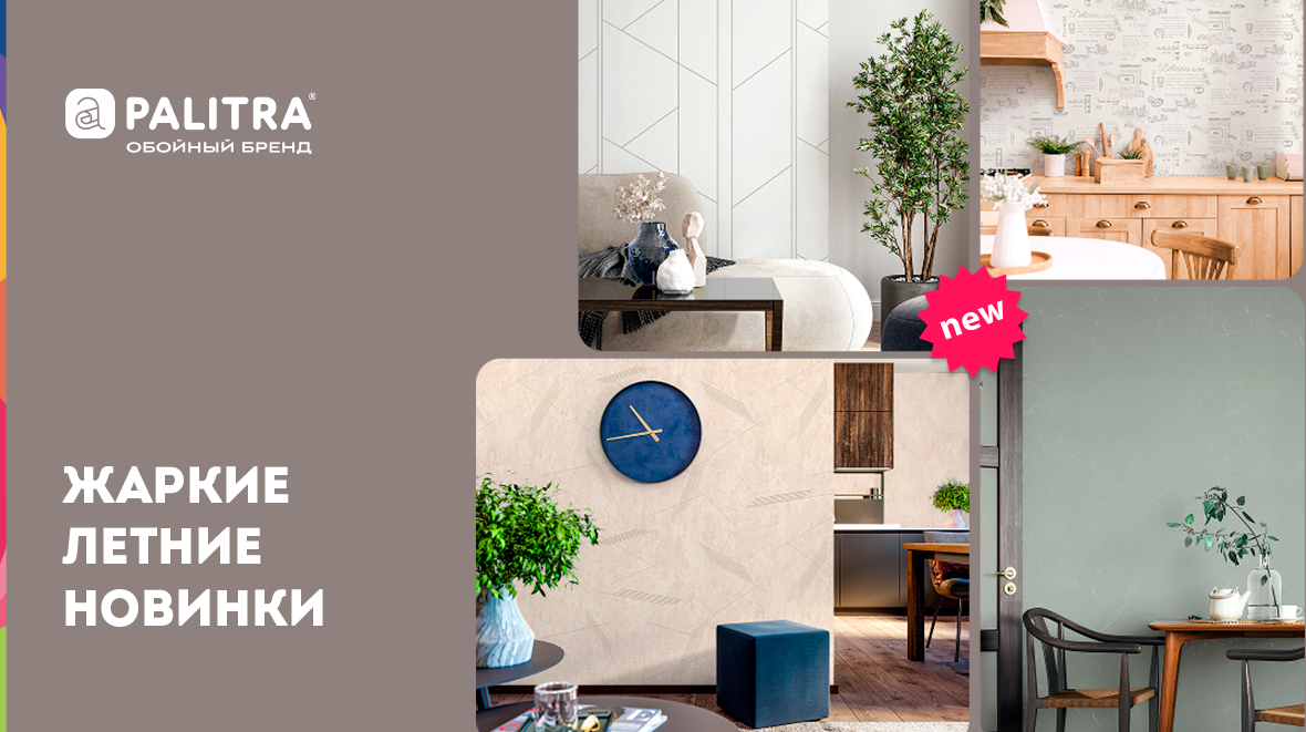 Июль на фабрике «ПАЛИТРА» — месяц свежих идей и летних коллекций. Мы представляем серию июльских новинок - семь коллекций обоев PALITRA, которые преобразят ваше пространство, украсят его стильными акцентами и сделают интерьер уютнее. В летней подборке новинок вы найдете освежающие природные формы, четкую геометрию линий и тепло уютных оттенков. Каждый дизайн создан с любовью к искусству и вниманию к трендам. Трио геометрических обоев восхищает четкими линиями, динамично выстроенными мотивами и стильными фактурами. Ровные прямые линии задают размеренный ритм интерьера и визуально структурируют пространство. Геометрические обои в каталоге Дизайны с природными мотивами — это утонченные силуэты травинок и листьев, натурального мрамора с шелковистой фактурой и камня. Натуральные формы создают ощущение уюта и визуальной гармонии. Обои с природным рисунком в каталоге Grand — новинка обоев в стиле прованс со светлыми пастельными оттенками и романтичным сюжетом в духе старой Франции. Этикетки