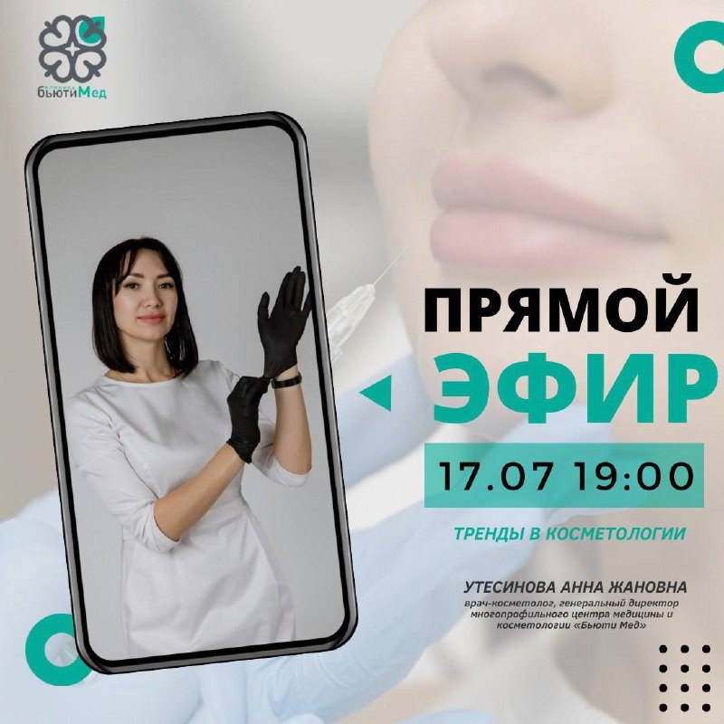 ✨ ПРЯМОЙ ЭФИР 17 июля в 19:00 ✨ ⠀ Хочешь быть в курсе самых актуальных трендов в косметологии? Подключайся к прямому эфиру с врачом-косметологом, экспертом и генеральным директором «Бьюти Мед» — Анной Жановной Утесиновой. ⠀ Разберём: — Какие они, тренды 2025? — Что сейчас действительно работает в косметологии — Какие процедуры безопасны и эффективны — Как выбрать своего специалиста ⠀ 📍 Ответим на ваши вопросы в прямом эфире! 🗓 17 июля 🕖 19:00 📲 Эфир пройдёт в ВКонтакте и Telegram-канале клиники #бьютимед #прямойэфирульяновск #аннаутесинова #трендыкосметологии #косметологульяновск #уколыкрасотыульяновск #эфирульяновск #бьютиклиникаульяновск #инъекцииульяновск #врачкосметологульяновск
