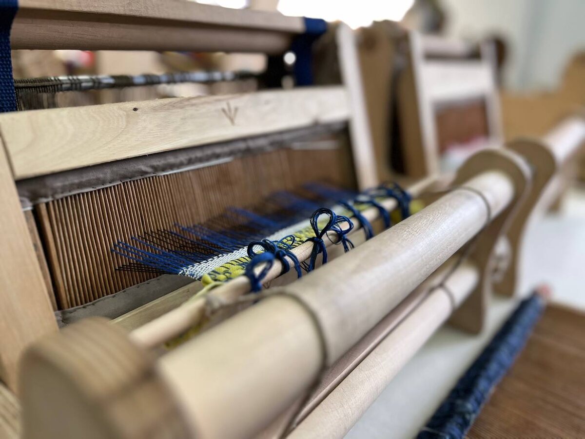 «Звонит дедушка за 70 лет и говорит, что у него в доме есть старинный ткацкий станок от его тёщи». Представляете сколько ему лет! Станок в хорошем состоянии, все детали родные -настоящее сокровище. Теперь каждый желающий может поработать за этим станком.