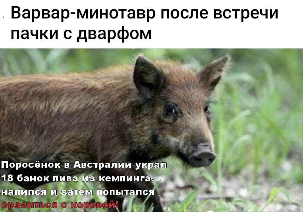 А у автора почти такое было в пачке. Правда это был не минотавр,а грунг, но это ещё смешнее получилось. Представьте картину, как пьяная лягушка до***вает (иначе не сказать) всех вокруг, цепляя всех языком. Мы все орали с этого как черти