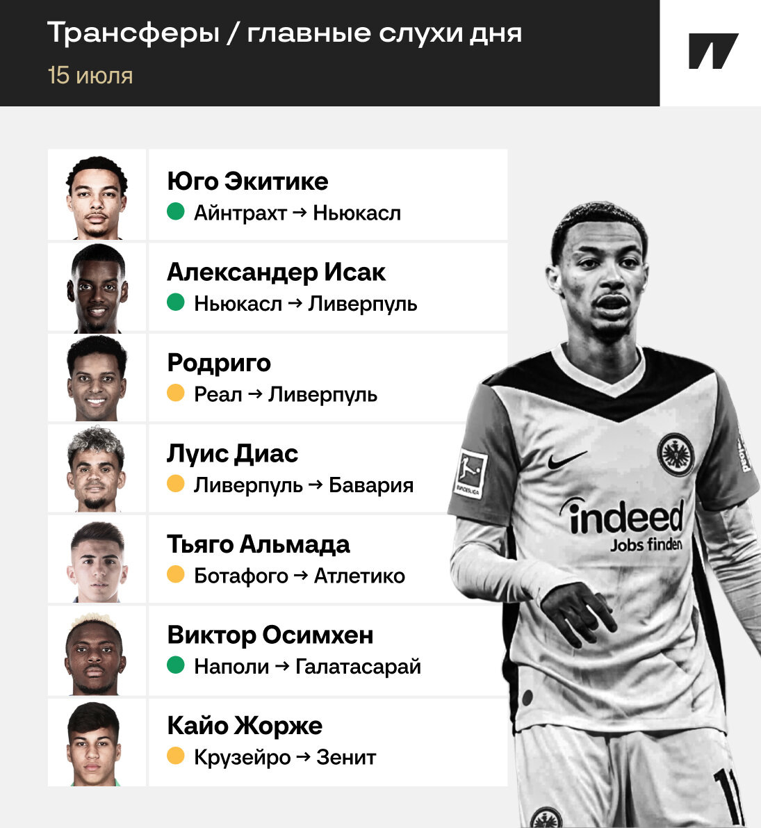 🟢 – есть подтверждение ESPN и Фабрицио Романо.