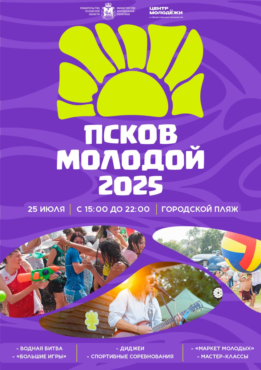 Как рассказали в АНО ПО "Центр молодежи и общественных инициатив", в программе фестиваля музыкальные сеты от диджеев региона, соревнования по волейболу и настольному теннису, фудкорт и шатер с настольными играми и видеоиграми от Федерации фиджитал спорта Псковской области.